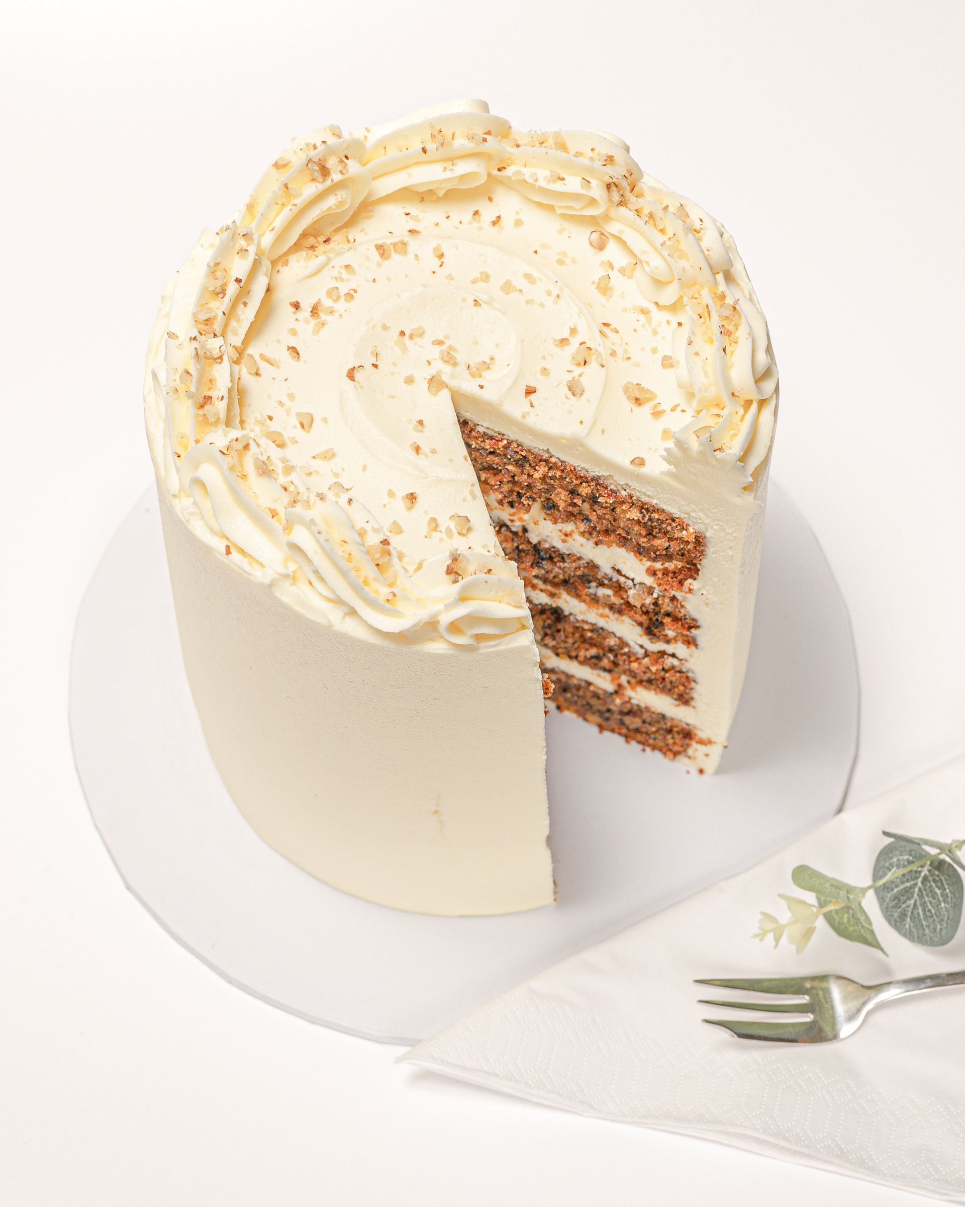 Unbelievably moist and utterly moreish. Our Carrot Cake is a must. Layers of Carrot Cake with chopped walnuts and cinnamon for added flavour and texture, filled with cream cheese frosting, and covered in our velvety vanilla American style buttercream.