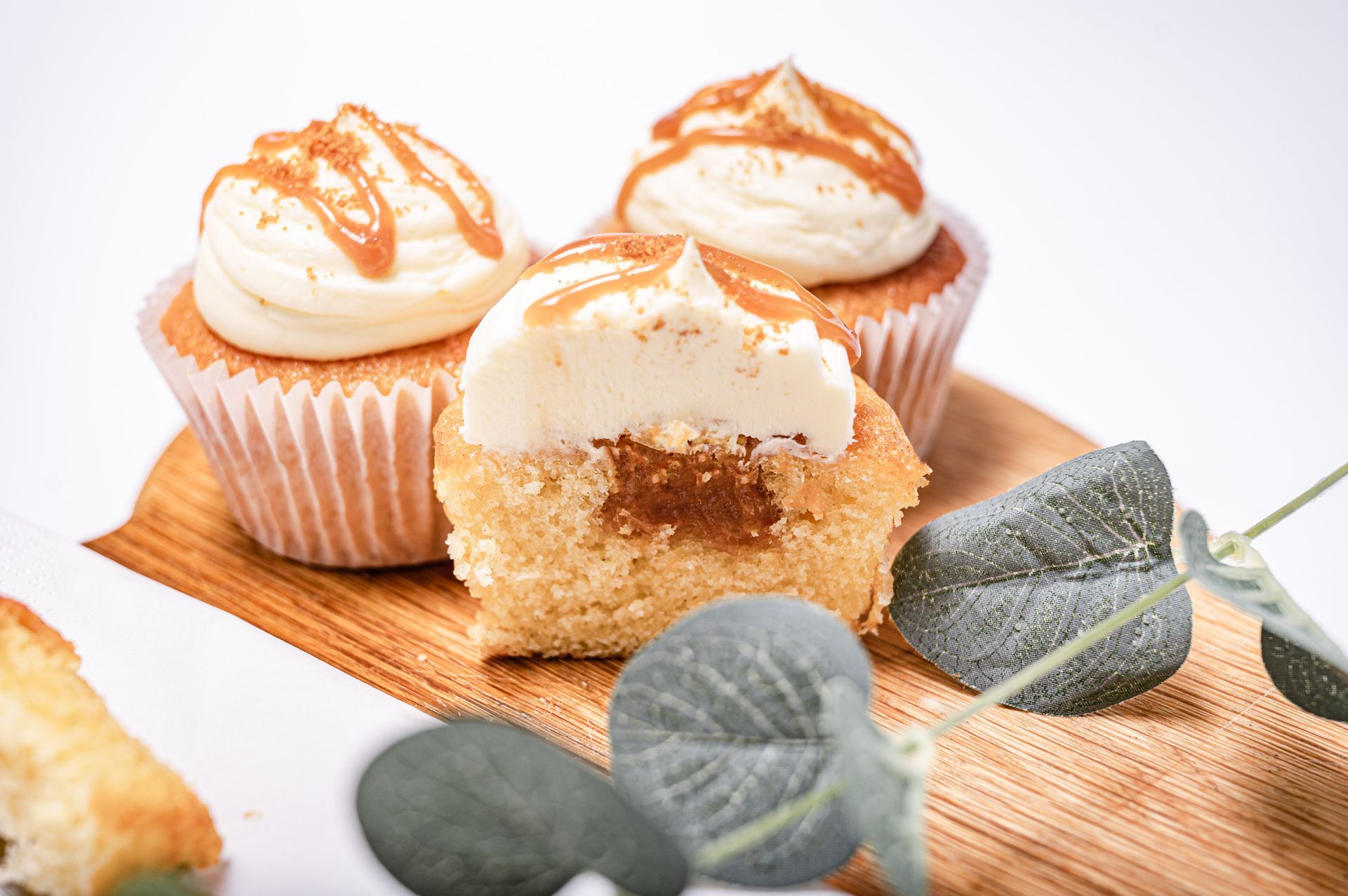 Classic moist Vanilla Sponge cupcakes with Vanilla Buttercream – made with real vanilla extract, filled & topped with a swirl of our very own salted caramel. Simple, but oh so delicious!